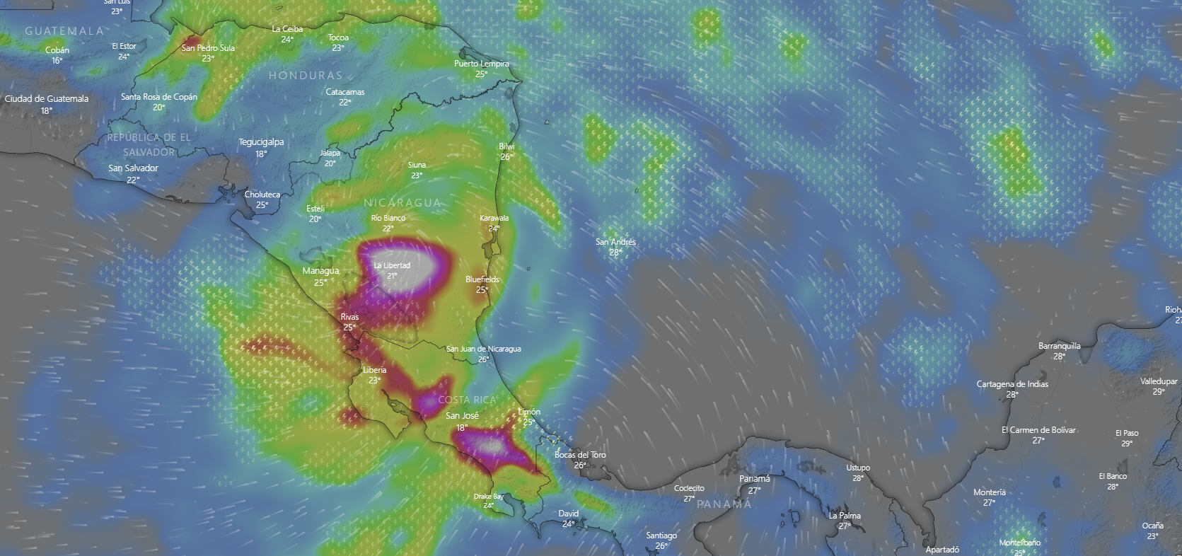 Al momento de impactar en tierra, los vientos alcanzaban los 136 kilómetros por hora, según el NHC. Asimismo, hay reportes de techos despegados, árboles caídos e interrupciones eléctricas en la ciudad de Bluefields, que permanece a oscuras, según medios oficiales.
