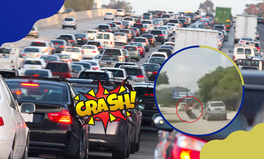 En el clip se puede aprecia como el conductor del vehículo rebasa a un motociclista que a primera impresión pareciera que va conduciendo con el celular en mano de manera temeraria.