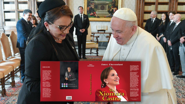 En su audiencia con el Sumo Pontífice, la presidenta hondureña le expresó al máximo líder de la iglesia católica en el mundo, que le entregaba su libro a solicitud de su autor, el reconocido médico Emec Cherenfant.