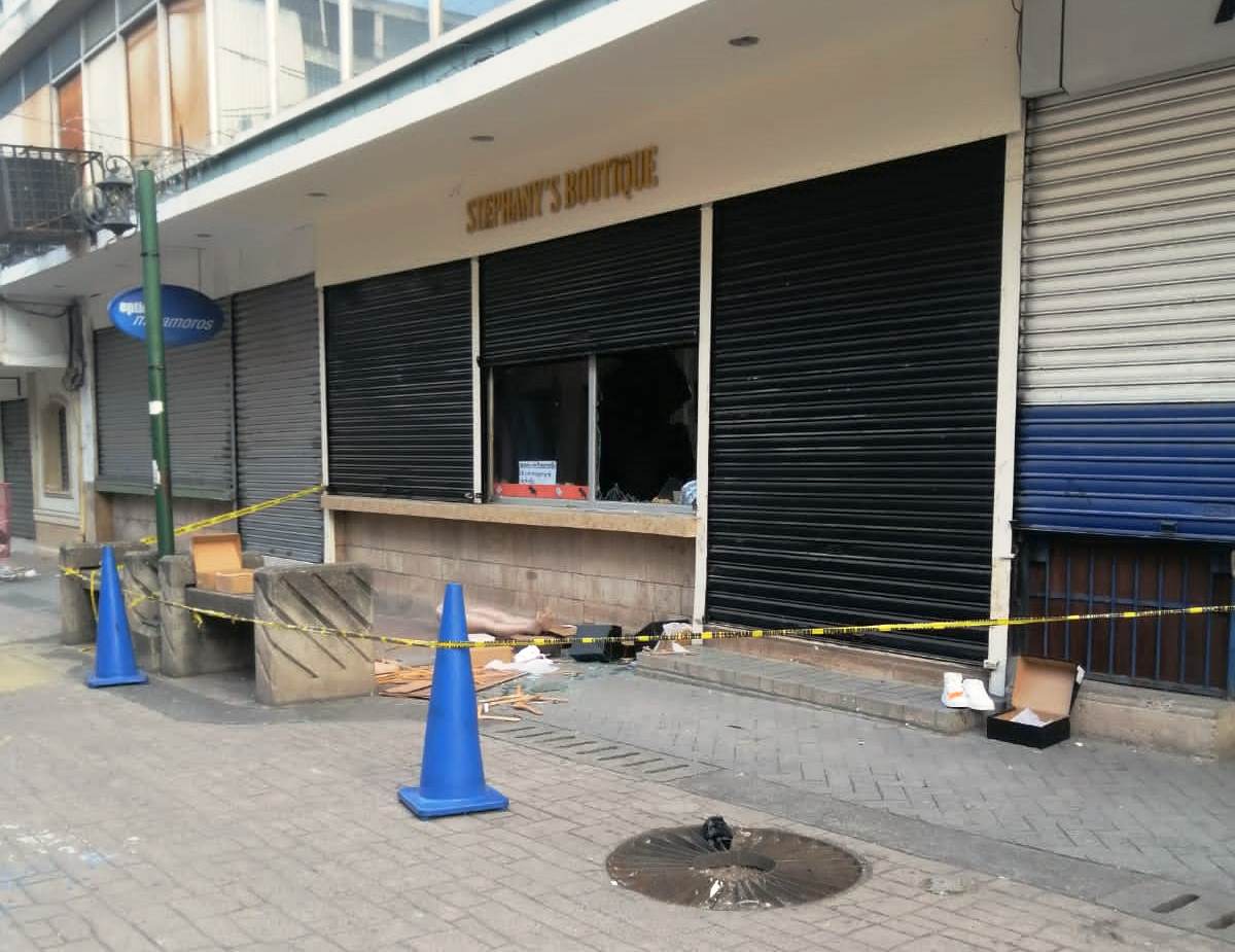 El Parque Central de la capital fue el escenario de un asalto a una tienda de ropa, los malhechores rompieron los vidrios para poder ingresar al local.
