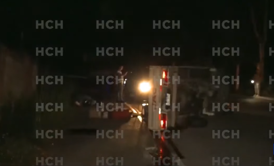 El accidente ocurrió en la calle que conduce al sector de El Lolo donde un camión volcó dejando pérdidas materiales.