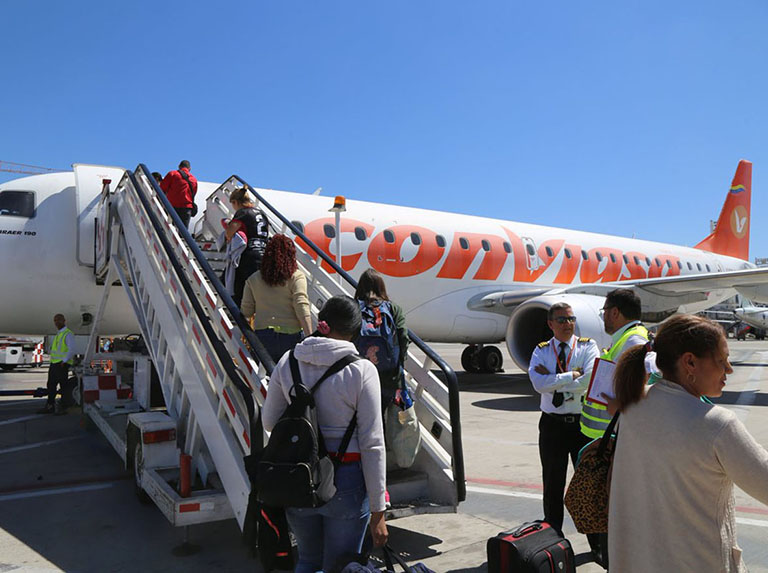 Los venezolanos llegaron al aeropuerto Internacional de Simón Bolívar a bordo de una aeronave del Consorcio Venezolano de Industrias Aeronáuticas y Servicios Aéreos.