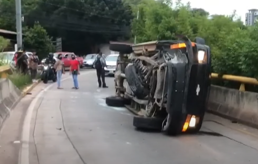 En horas de la tarde de este domingo se reportó el volcamiento de una camioneta en la salida a Valle de Ángeles en la capital.