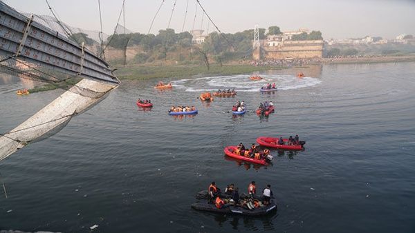 Se desplegaron equipos de policía, militares y de respuesta a desastres y el esfuerzo de rescate continúa en la ciudad de Morbi, donde elevan a 141 la cifra de muertos por la caída del puente.