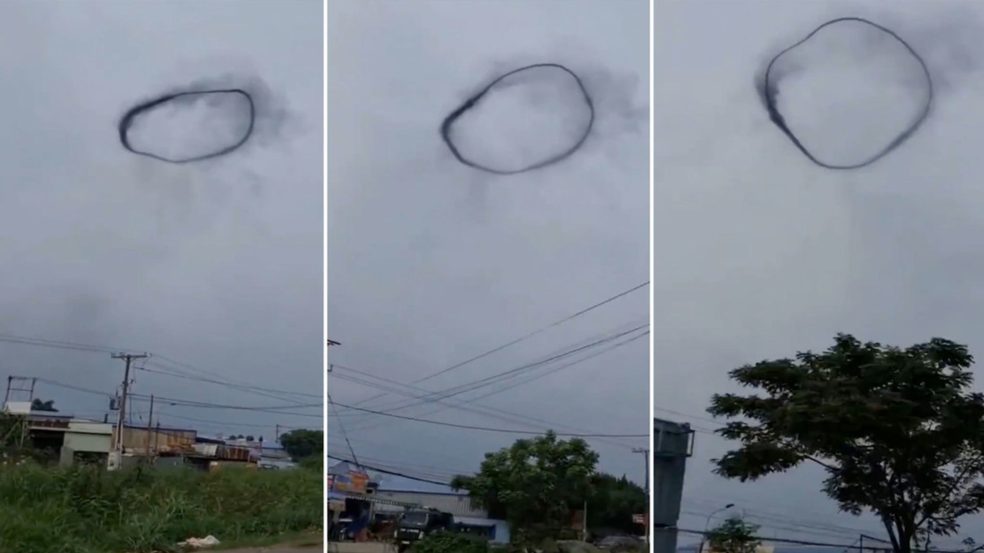 Los usuarios de las redes sociales se han impactado por un video viral de un anillo de humo negro que acecha una carretera en Vietnam.