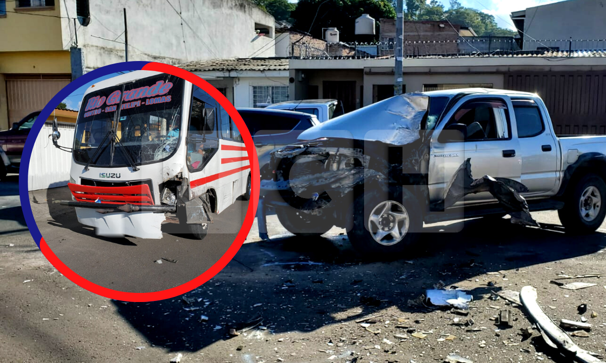 Se reportó un accidente de tránsito en la colonia Loarque de Tegucigalpa, donde participó un bus tipo «rapidito» y un vehículo tipo pickup.