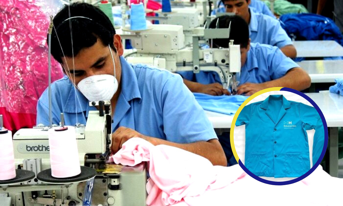 Es una gabacha color azul turquesa, que los encargados de las micro y pequeñas empresas, ya solicitan que se les otorgue la confección de las mismas.