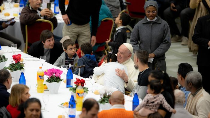 El Papa Francisco asistió este domingo 13 de noviembre al almuerzo organizado por la Jornada Mundial de los Pobres 2022.