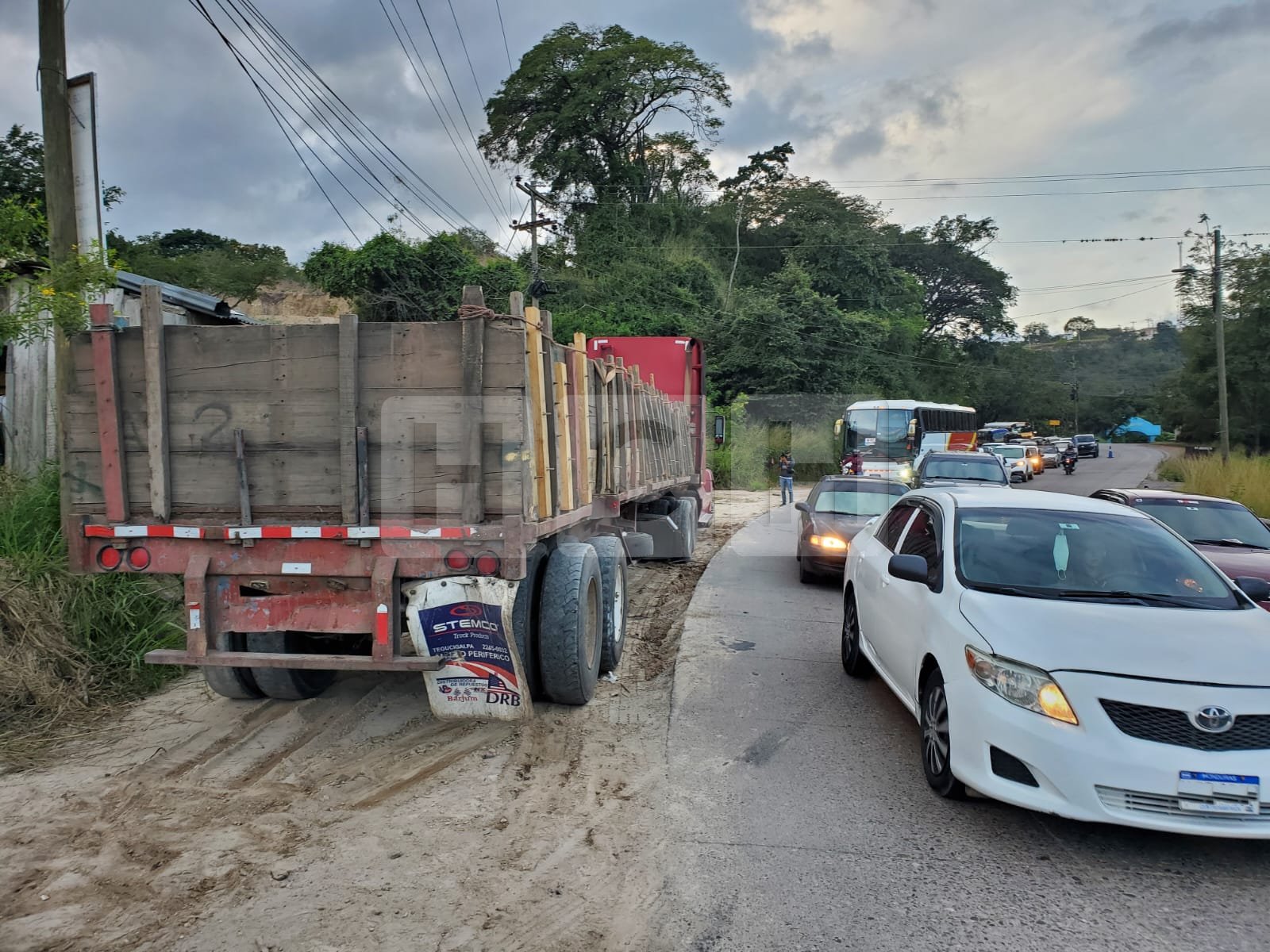 En la carretera al sur, a la altura de la aldea Germania, una rastra presentó fallas mecánicas y esto produjo que el cargamento fuera desprendido de esta unidad.