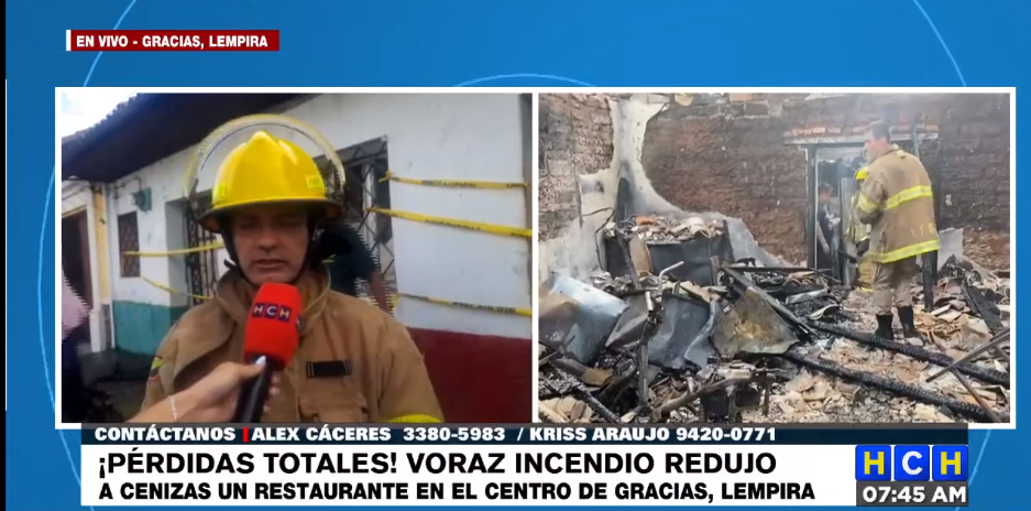 En horas de la madrugada se reportó un incendio en Gracias, Lempira, mismo que consumió un restaurante de la zona.