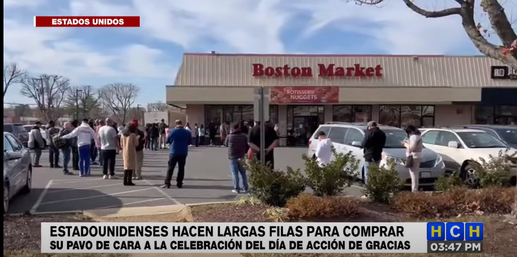 Familias hacen largas filas en el estado de Virginia, Estados Unidos, para comprar pavo, en el marco de la celebración del Día de Acción de Gracias.