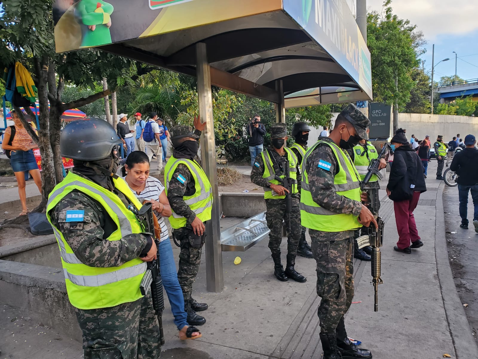 Días atrás, grupos antisociales realizaron disparos en la parada de buses de las cercanías del puente a desnivel «Ricardo Álvarez» en Tegucigalpa, hoy los agentes militares se suben a las unidades de transporte de este sector y andan tras la búsqueda de extorsionadores, asaltantes y criminales.