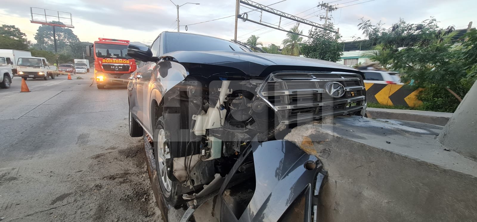 Un fuerte accidente de tránsito se registró en las antiguas instalaciones del peaje, salida al Bulevar del Norte en Choloma, un vehículo tipo camioneta impactó contra una base del cobro de peaje quedando con fuertes golpes en su parte frontal.