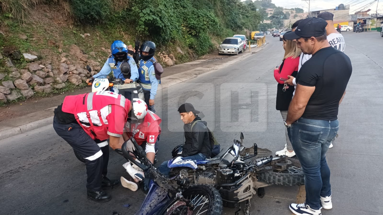 Rápidamente se hicieron llegar paramédicos de la Cruz Roja, quienes le brindaron asistencia medica al conductor de la motocicleta.