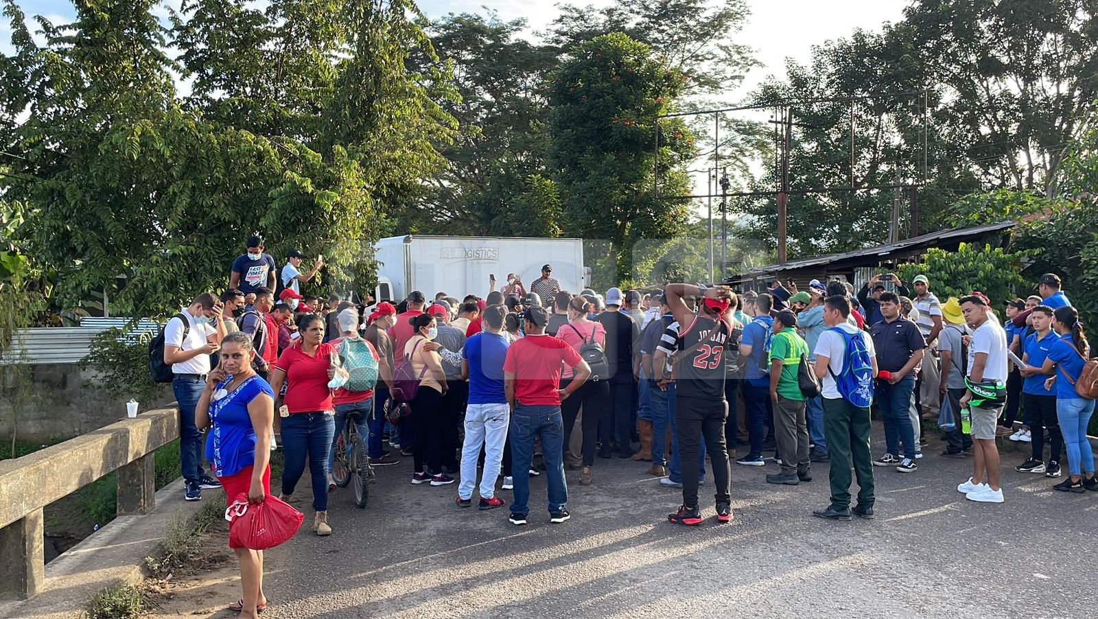 Empleados de la corporación Dinant se toman la carretera CA-13 a la altura del puente Leán, los manifestantes exigen la liberación de las tierras donde ellos ejercen su labor.