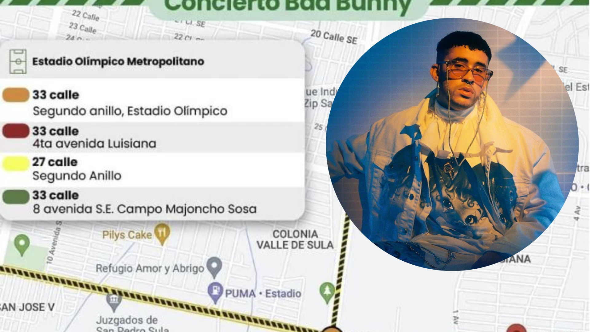 La alcaldía de San Pedro Sula informó sobre el cierre de algunos accesos previo al concierto de Bad Bunny.