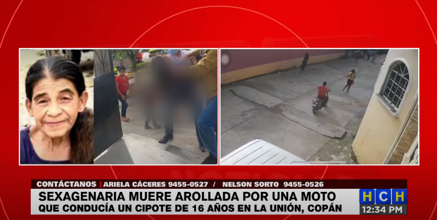 Un joven menor de edad que se conducía en una motocicleta en exceso de velocidad, atropelló a una fémina de la tercera edad en La Unión en el departamento de Copán.