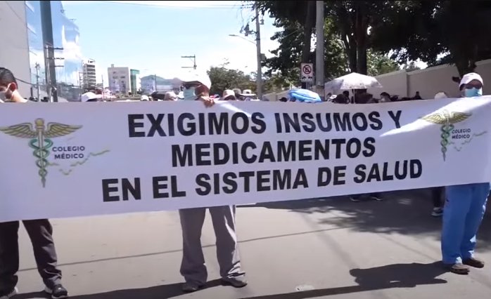 Los protestantes también claman por un abastecimiento de medicamentos para los diferentes hospitales y centros de salud del país, los galenos esperan ser recibidos por la presidenta Xiomara Castro.