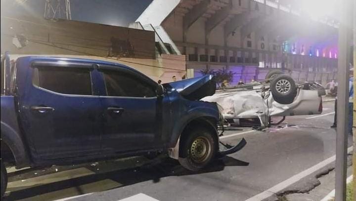 Uno de los vehículos en este accidente quedó en posición de llantas arriba, por lo que se conoce preliminarmente que este conductor perdió el control de su móvil.