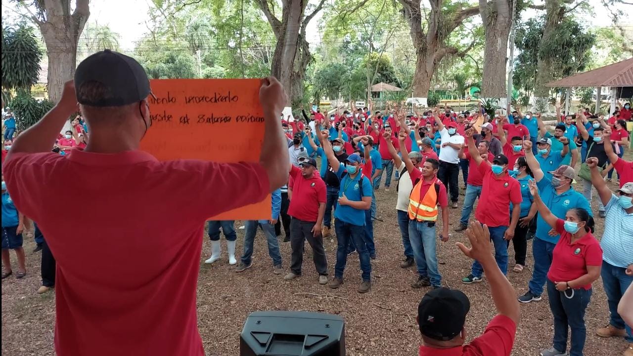 Los protestantes exigen la entrega de mil lempiras por cada mes a cada trabajador, que ya fue acordado en el contrato colectivo como un retroactivo desde el mes de enero, y hasta la fecha no se les ha hecho efectivo lo acordado.