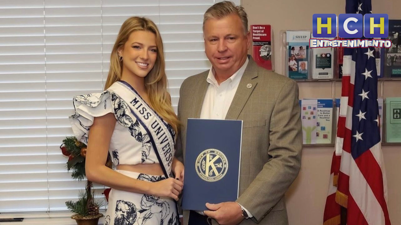 La guapísima Rebeca Rodríguez, Miss Universo Honduras, recibió un homenaje por Mike Glasser, el alcalde de la ciudad de Kenner, New Orleans.