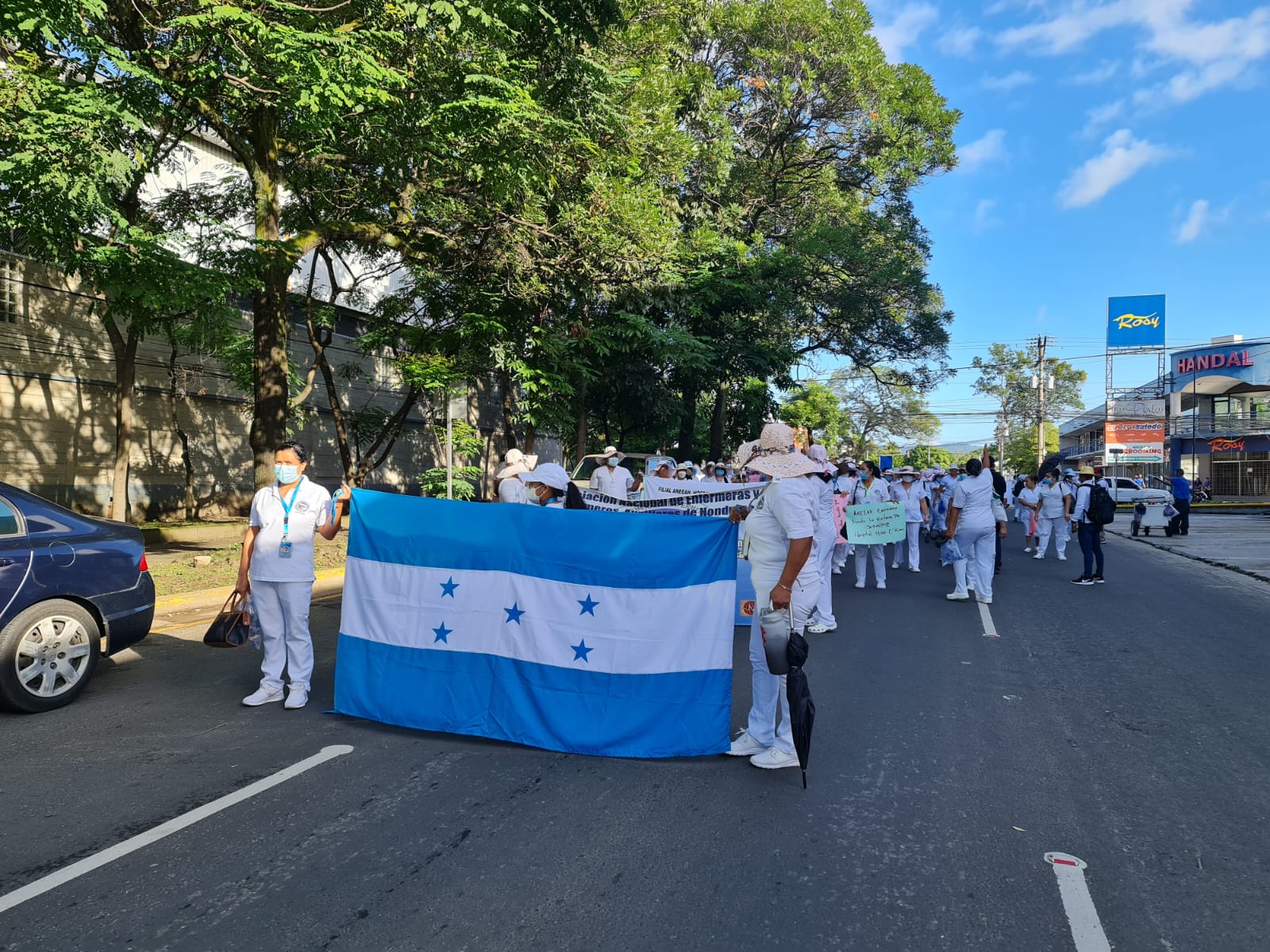 Empleados de la salud se toman la tercera avenida de la ciudad de San Pedro Sula para exigir un reajuste salarial.