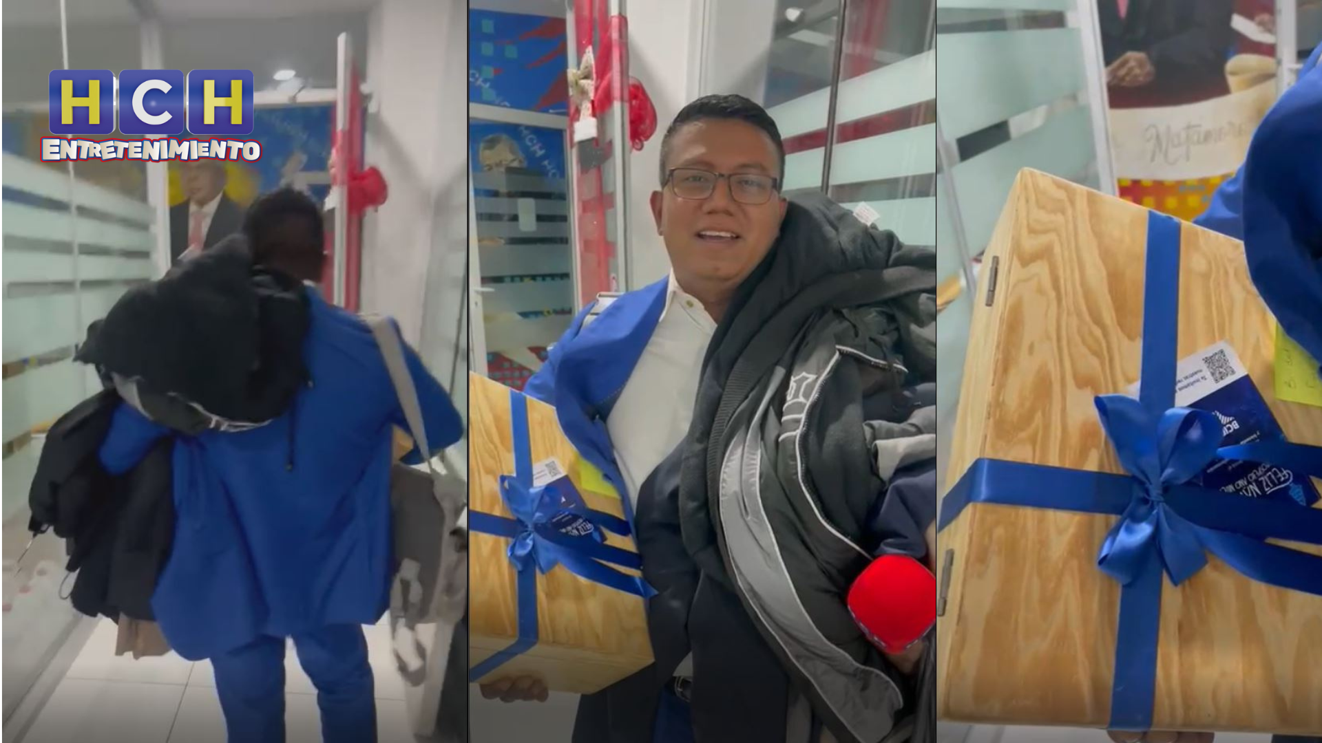 Encontramos al periodista Bridel Euceda, con los brazos llenos de regalos y estrenos que ha recibido por parte de su amigo y compañero Alex Cáceres.