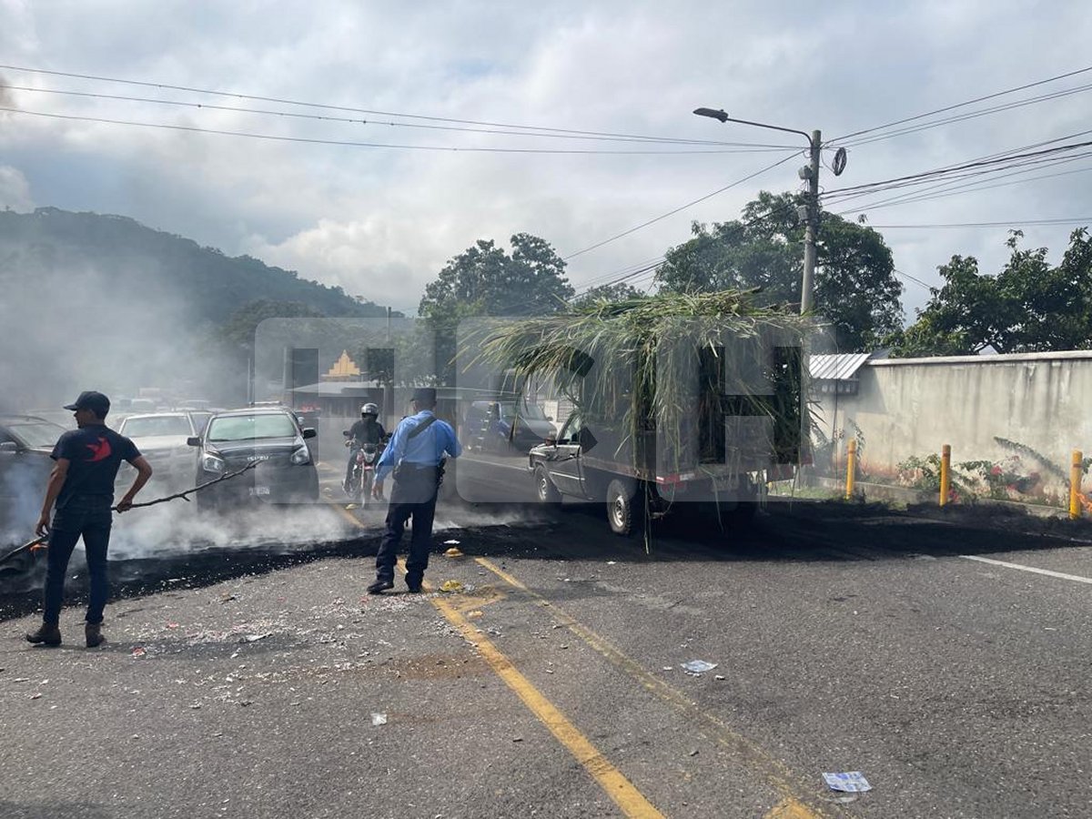 Dueños de los restaurantes del Lago de Yojoa protestan en la carretera CA-5 a la altura de Las Conchas, tras exigirles que demuelen los muelles que fueron construidos frente a esta reserva natural.
