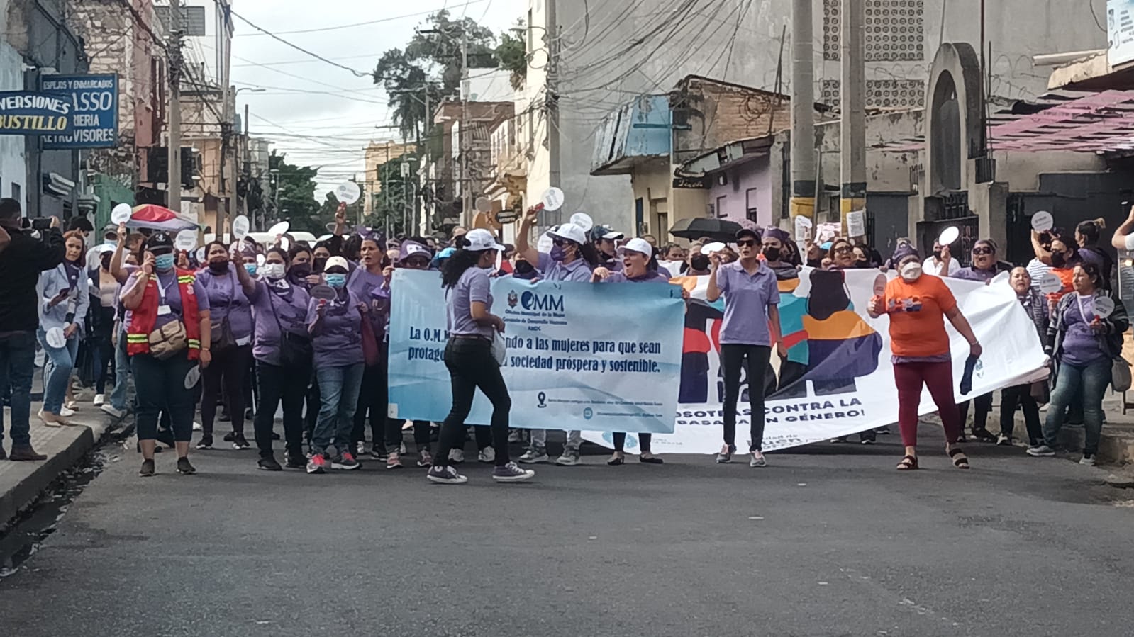 Mujeres de distintas organizaciones feministas protestan en las calles de Comayagüela para exigir que se respeten los derechos y garantías de las féminas.