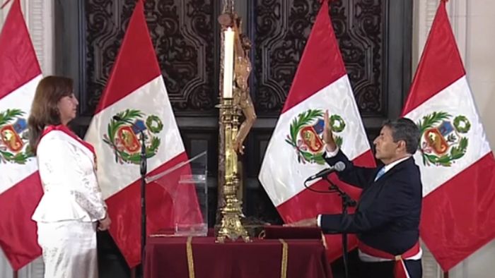 La mandataria juramenta al presidente del Consejo de Ministros y a los nuevos ministros.
