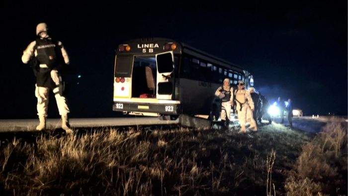 La Secretaría explicó que la policía estatal ubicó en la entrada de Ciudad Juárez a dos vehículos que coincidían con la descripción dada por el chofer del bus. En uno de los autos encontraron a los sospechosos y a 23 migrantes venezolanos.