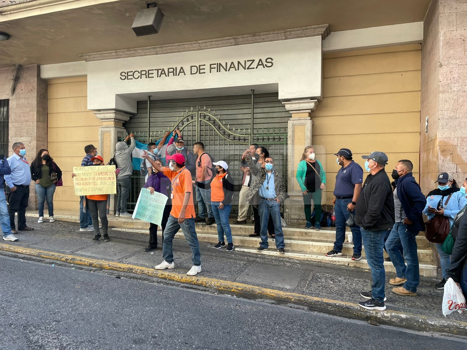 Los protestantes exigen el pago de cinco meses de salario que se les adeuda, además la cancelación de vacaciones, aguinaldos y catorceavo.