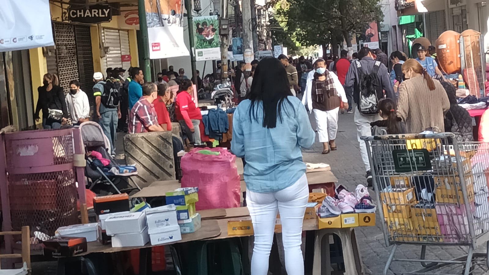 Camisas, zapatos, manzanas, uvas, mascarillas, fajas y pantalones, son algunos de los bienes que se exponen en el concurrido Centro de Tegucigalpa.