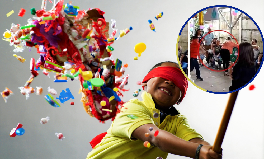 En redes sociales se viralizó un video en el que un niño le dio un tremendo golpe a una señora que estaba justo en frente de él cuando trataba de romper la piñata en una fiesta infantil. Como es costumbre en esta actividad, el pequeño tenía los ojos vendados.