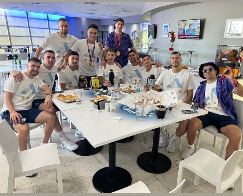 Esta mañana, la Scaloneta ha desayunado en el predio de la Albiceleste preparándose para la movilización al Obelisco de Buenos Aires entre las 8:00-9:00 de la mañana hora hondureña.