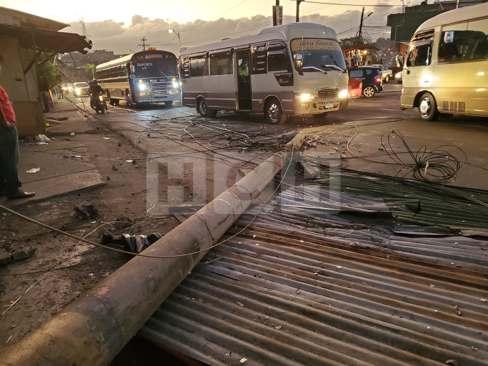 Se reportó que una unidad de transporte rapidito fue a impactar contra tres postes del tendido eléctrico en la colonia El Carrizal de Comayagüela.