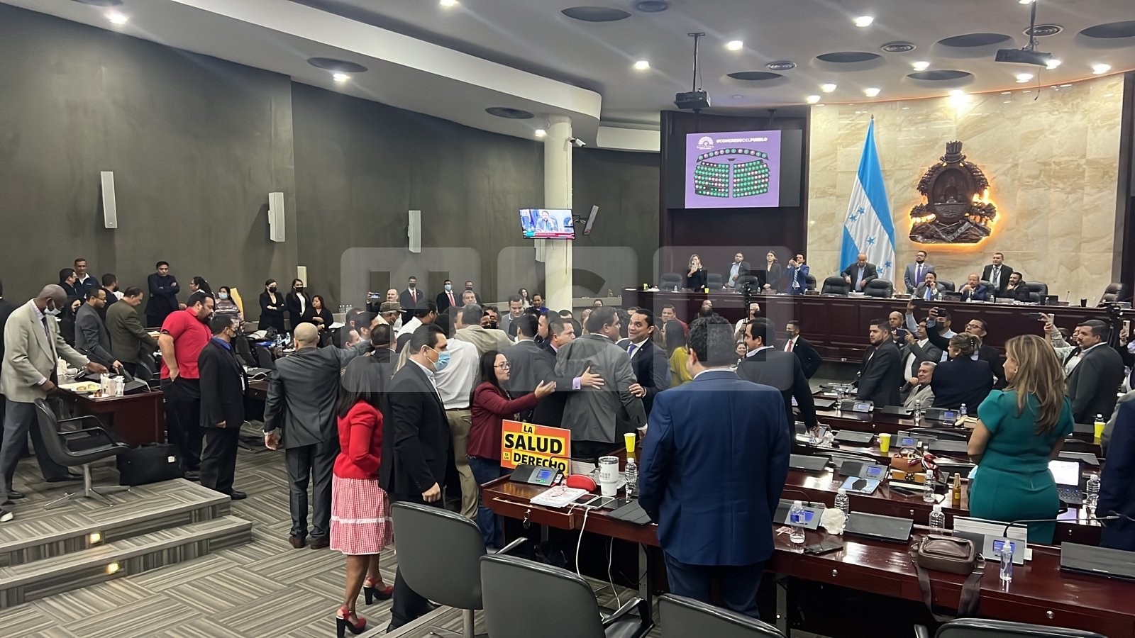 Un nuevo zafarrancho protagonizaron los diputados del Partido Libre y Nacional en el hemiciclo legislativo, todo inició cuando el diputado Jack Uriarte presentó la moción para que se diera trámite al Presupuesto General de Ingresos y Egresos de la Republica del año 2023, pero el diputado Bartolo Fuentes le arrebató el proyecto de Ley al presidente del Congreso Nacional, Luis Redondo.