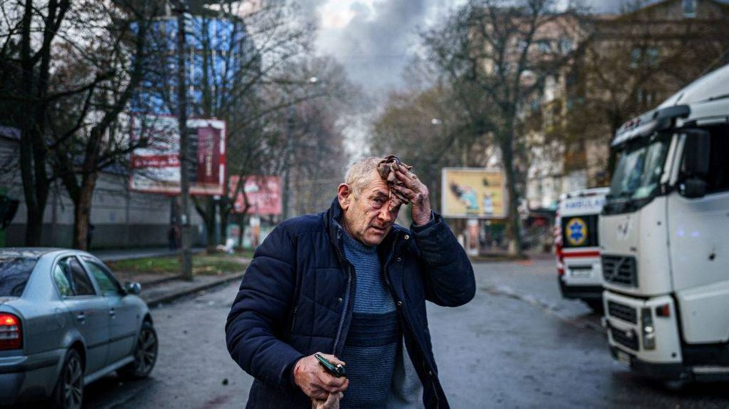 El presidente ucraniano publicó varias fotos que muestran las secuelas del bombardeo, en las que los autos están en llamas y se ven los cuerpos en las calles.