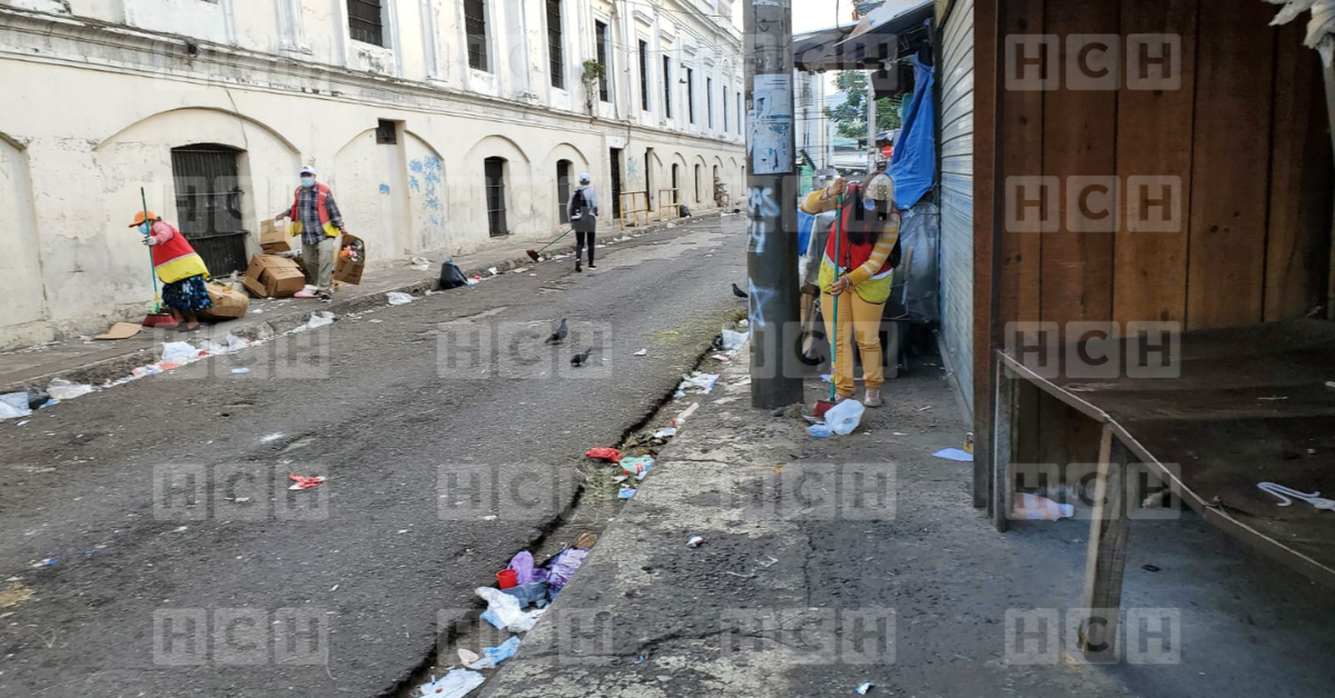 Desde las 6:00 de la mañana las cuadrillas de aseo de la comuna capitalina iniciaron la limpieza de las calles y avenidas de los mercados capitalinos.