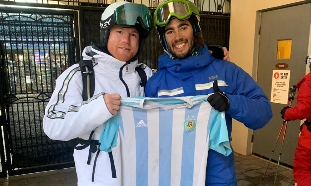 El encuentro del pugilista mexicano y el ciudadano argentino se dio en Vail, donde Canelo disfruta de unas lujosas vacaciones familiares, pues ambos están llevan ropa para esquiar.
