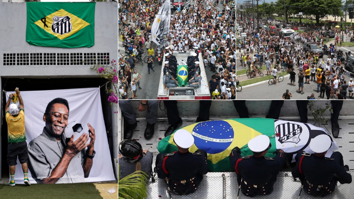 Pelé será sepultado en Santos la ciudad donde creció y se volvió famoso. Se oficiaba una misa en el Estadio Vila Belmiro antes de que el féretro sea llevado por las calles hasta un cementerio cercano.