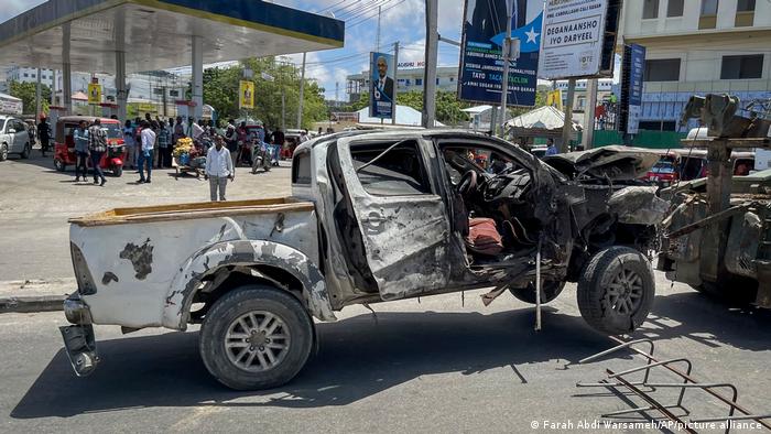 «Los terroristas atacaron esta mañana el poblado de Mahas utilizando vehículos cargados con explosivos. Atacaron una zona civil y confirmamos que nueve personas, todas civiles, murieron en las dos explosiones», dijo a AFP el oficial local de seguridad Abdullahi Adan.