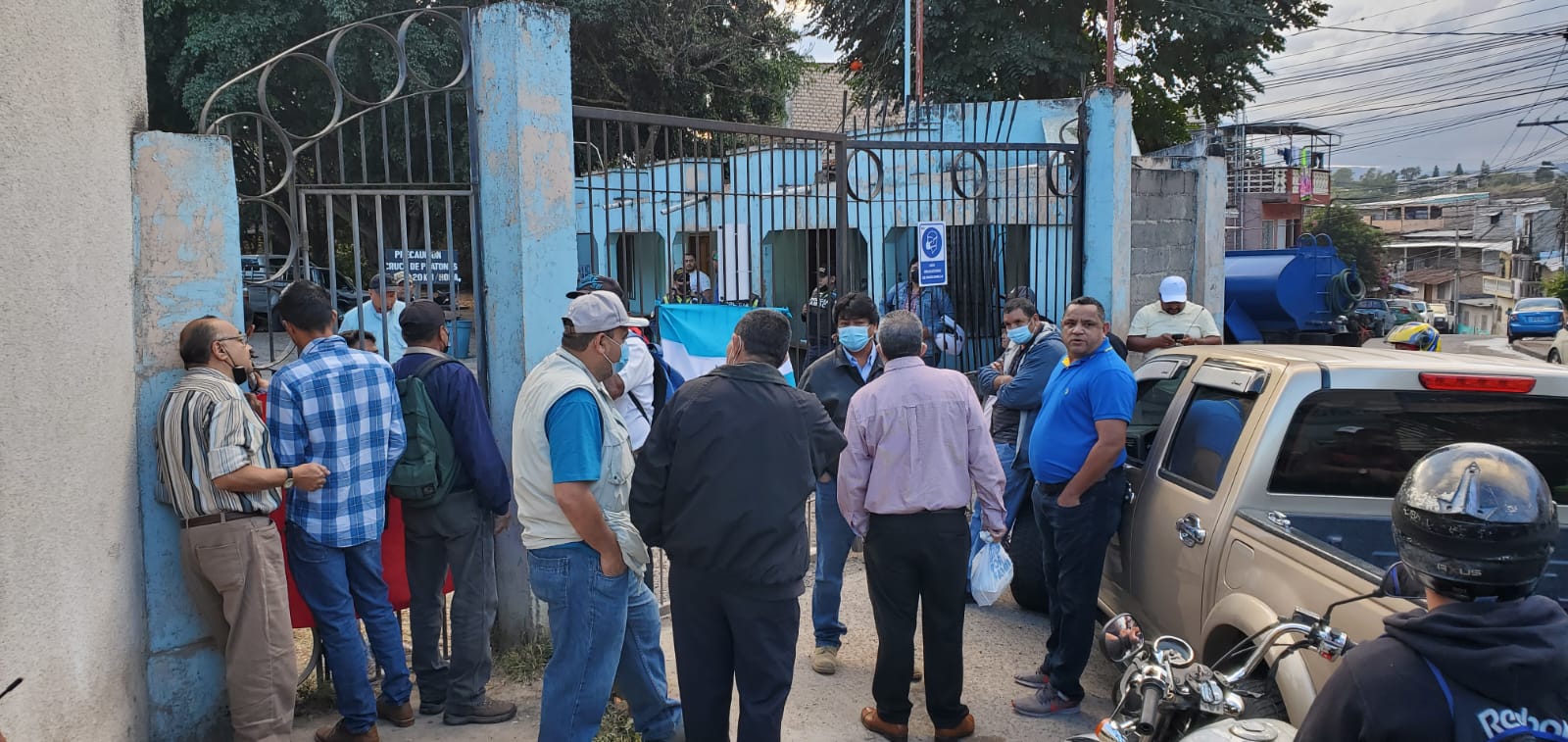 Empleados del Servicio Autónomo Nacional de Acueductos y Alcantarillados (SANAA) protestan en las afueras de las instalaciones de esta institución en la colonia Divanna de Tegucigalpa por ser removidos de sus centros de trabajos sin ningún aviso anticipado.