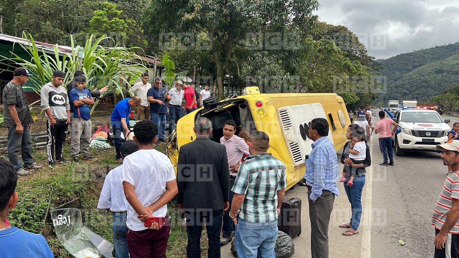 Diferentes miembros de una familia se transportaban en un bus rapidito desde Valle hasta Potrerillos, Cortés y de repente se les explotó una llanta, y se volcaron.