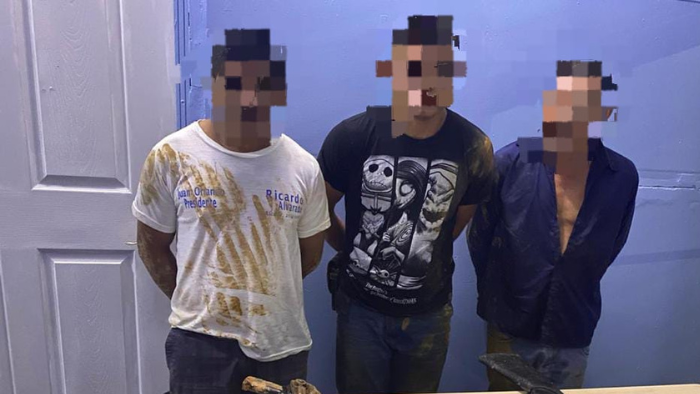 Los detenidos de 18, 45, y 47 años se les supone responsables del delito de porte ilegal de arma de fuego de uso comercial; mismos que se les decomisó: