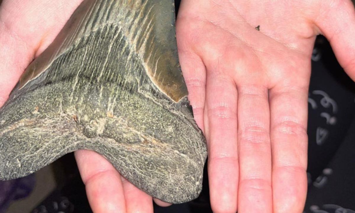 Vadeando en aguas hasta las rodillas, la niña encontró un diente de unos 13 centímetros de largo perteneciente al prehistórico ‘Otodus megalodon’, el tiburón más grande del mundo y protagonista de varias películas de terror.
