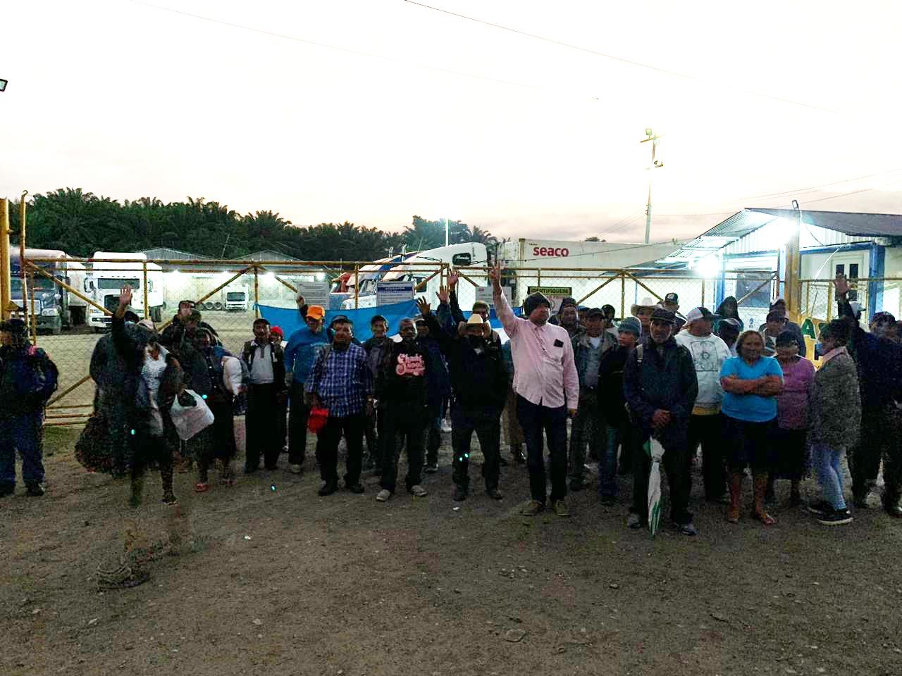 Exempleados de la Standard Fruit Company protestan en un predio de contenedores en el municipio de Sabá, Colón, para exigir el recibimiento de indemnización de esta empresa.