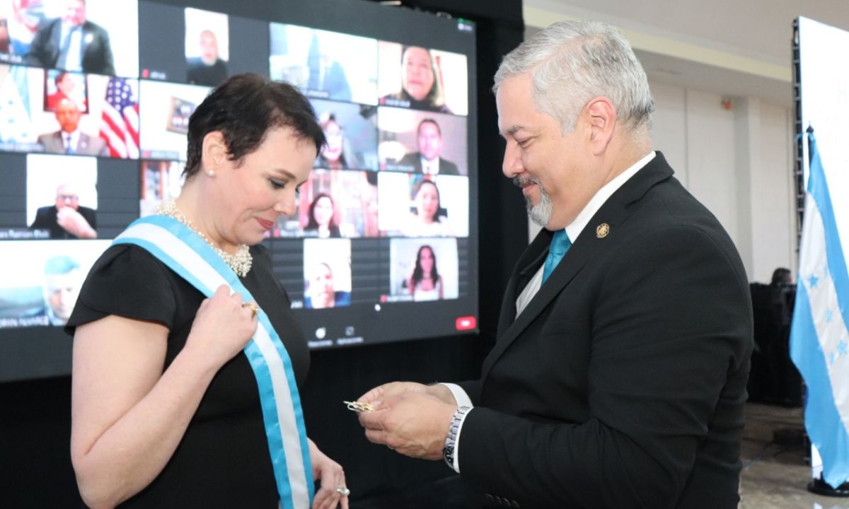 Además, recibió su reconocimiento Patricia Rodas, quien fungió como ministra de Relaciones Exteriores de Honduras.