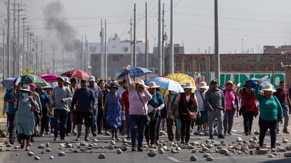 Los manifestantes exigen la renuncia de la presidenta Dina Boluarte, el cierre del Congreso, el adelanto de elecciones generales a 2023 y una asamblea constituyente.