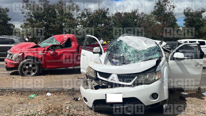 Un vehículo tipo turismo color blanco impactó con un carro tipo pick up color rojo, los conductores de estos resultaron con heridas en sus cuerpos.
